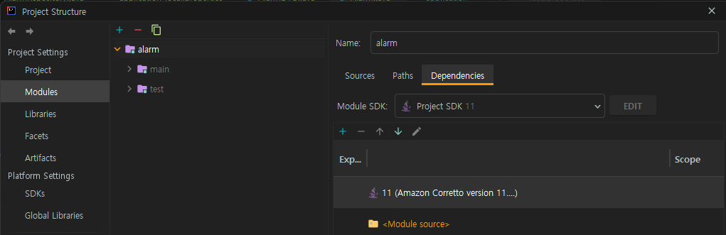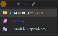 위 블로그를 발견했는데 Project Structure 옵션에서 Modules → Depedencies → + 버튼 클릭 → JARs or Directories… 옵션 클릭 → ok 버튼 클릭으로 문제 해결